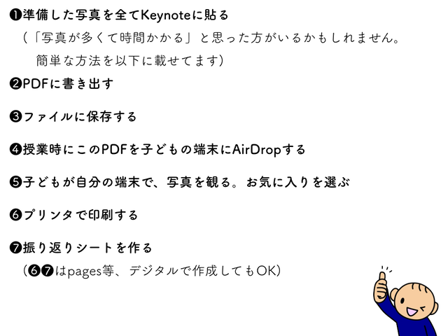 前回のブログで行事の振り返りについて書きました。その中で、複数枚の写真をまとめてKeynoteに貼り付け、PDF変換する方法を書きましたが、それよりも簡単な方法をいつもお世話になっている佐賀の松永さんに教えてもらいました。