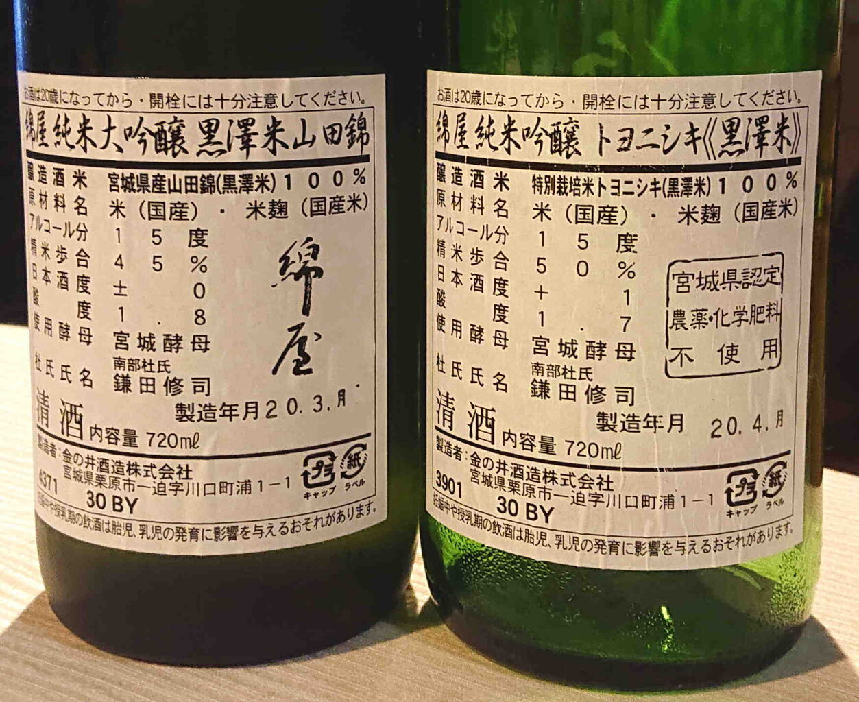 大吟醸と吟醸、磨きは5%しか変わらん。米の品種は違うけど産地も一緒。どんだけ味が変わるんやろうと思うたら、吟醸のほうはふわっと口に入るけど、キリッとした切れ味で、大吟醸のほうがやさしい余韻が漂う。香りもすっきりしてるし、どっちもおいしいことには変わりない。ねーさん様、毎度おおきにですm(._.)m