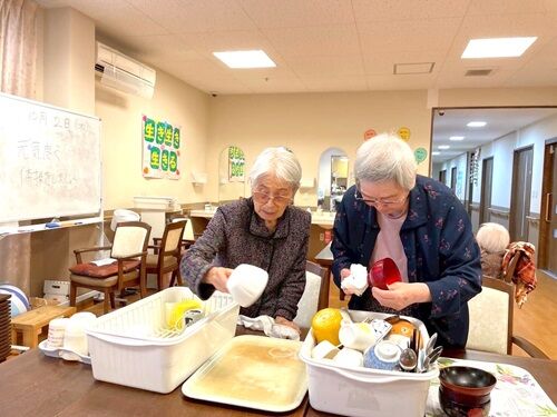 向敷地では毎日入居者様が職員と一緒にお手伝いをしてくださっています
