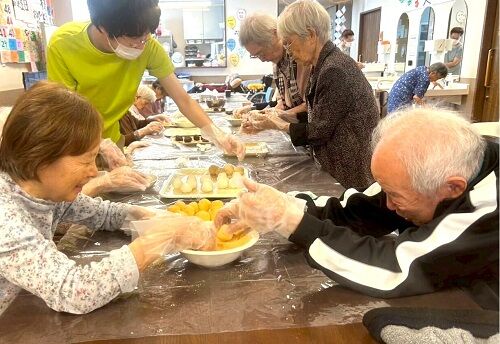 向敷地では先日、お月見で3色おはぎやうさぎだんごを作りました!
