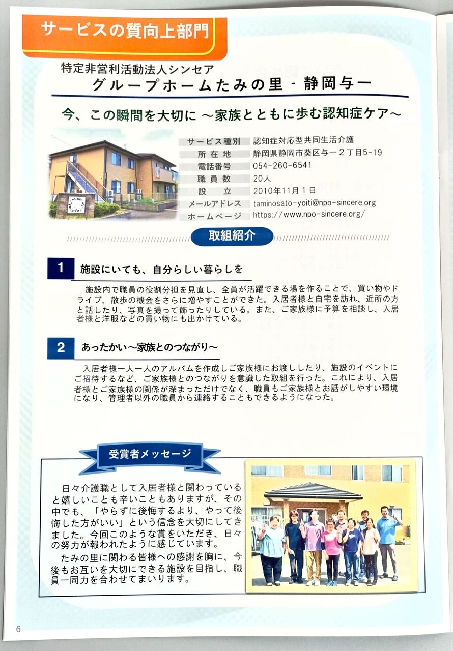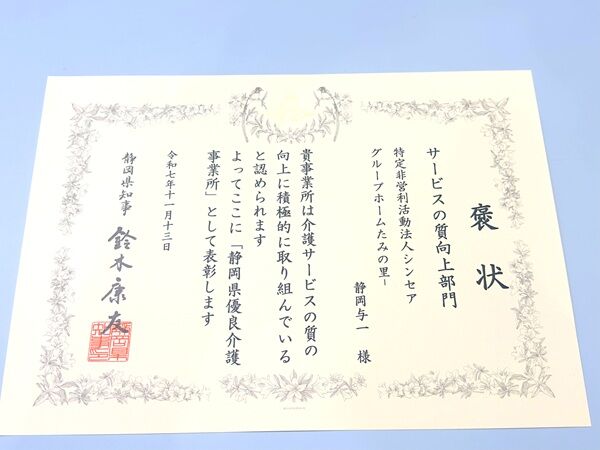 「静岡県優良介護事業所表彰」でたみの里‐静岡与一が表彰していただきました!