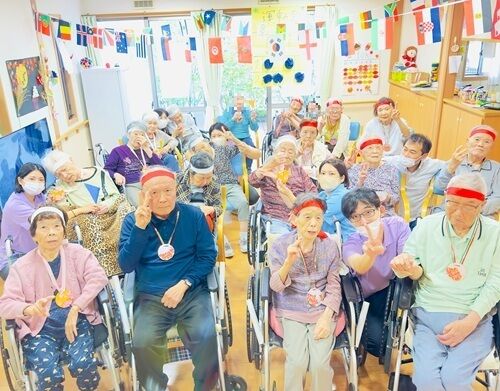 ラジオ体操では皆さん大きく手を伸ばしたり