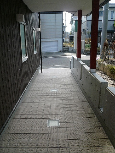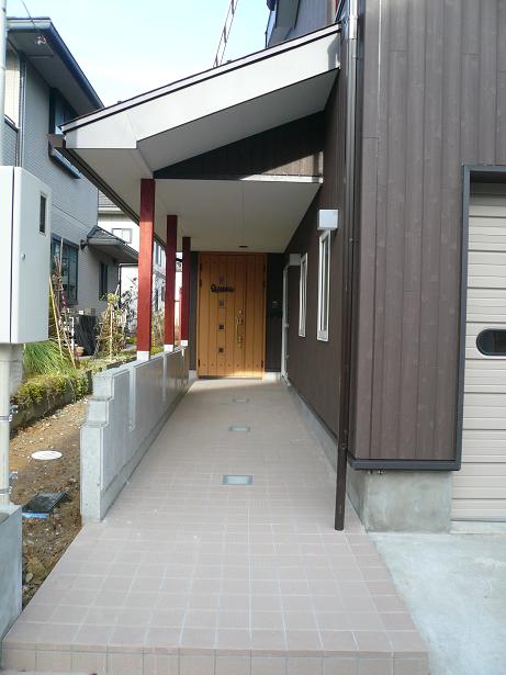 雪国ですので、アプロ−チは雁木状に屋根を掛けました。