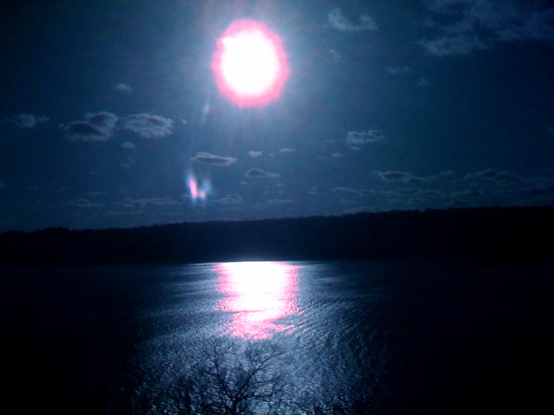 太陽も、まばゆいばかりにハドソン川を照らしつけた。iPhoneのカメラは、情けないので太陽の反射を撮ると、こんな風になる。これも、まぁ、乙なもんかな。結構、アーティスティックな感じがする。