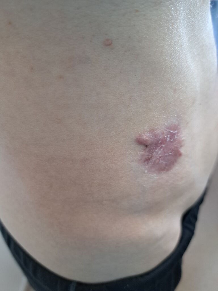 三箇所の傷痕のうち、これまでステロイド接種いただいたのは右脇腹の部位のと、胸部&へそ上の部位のと二箇所です。
