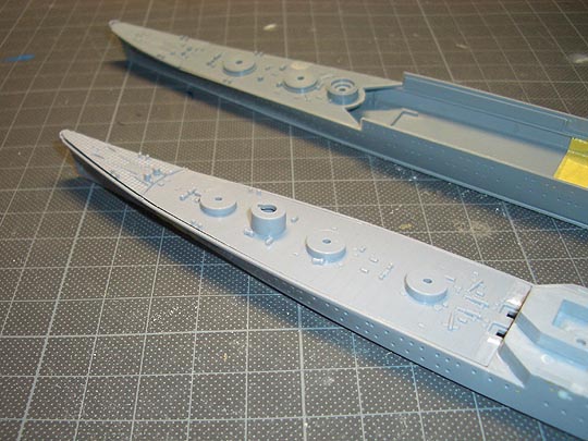 特に、セルター甲板の航空機軌条まで削ってしまったのは、明らかにやり過ぎ。