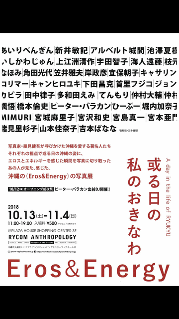 沖縄を愛する著名人たちそれぞれの視点で或る日の沖縄の姿に、エロスとエネルギーを感じた瞬間を切り取った写真展。