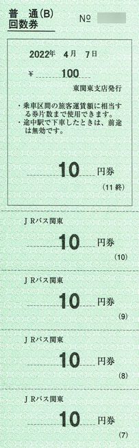 JRバス関東 東関東支店 2 (西暦表示化後の普通回数券(B)の新券)