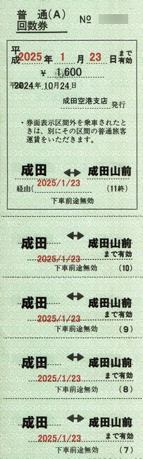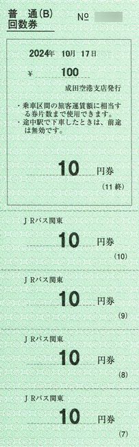 JRバス関東 成田空港支店 1 (普通回数券(A)及び普通回数券(B))
