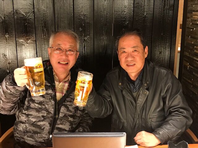すっかり寒くなった12月4日、以前は大阪在住で関西つつじヶ丘同窓会のメンバーでいつも応援歌をリードしてくれていた川瀬俊吉さんが仕事で京都に来られ、各同窓会の近況を伺いながら杯を重ねた。