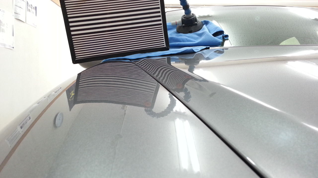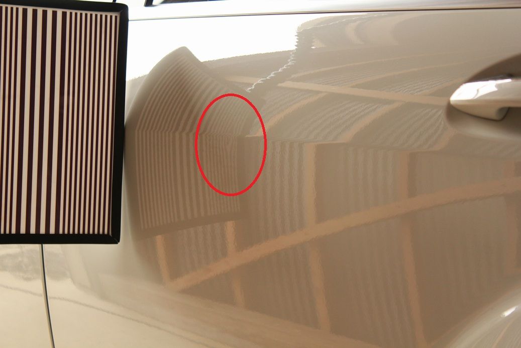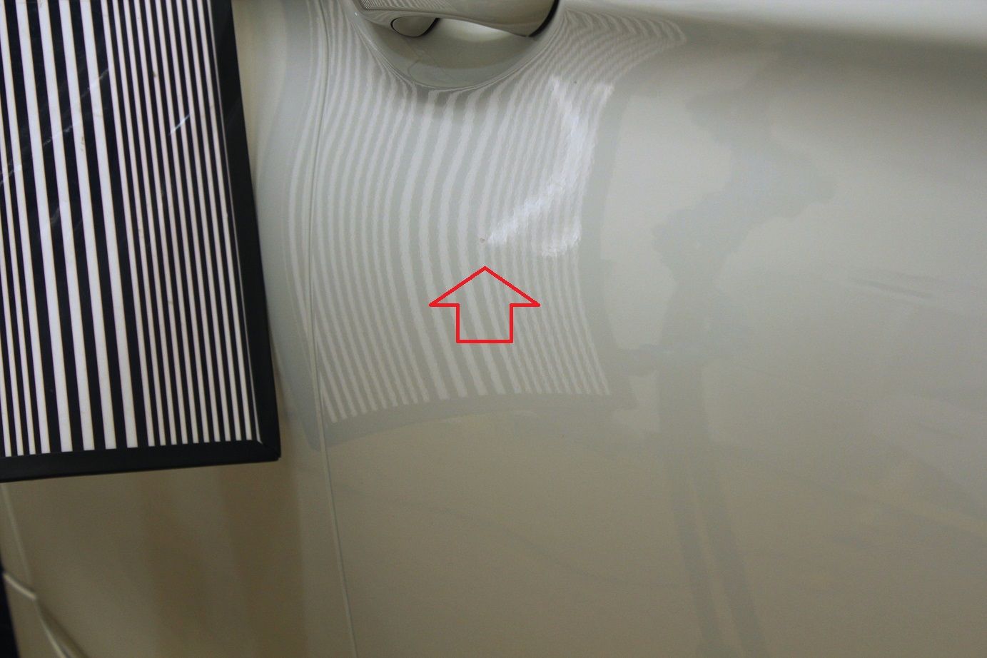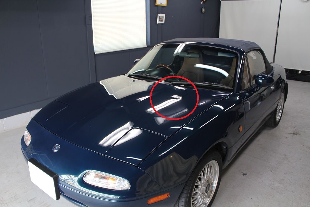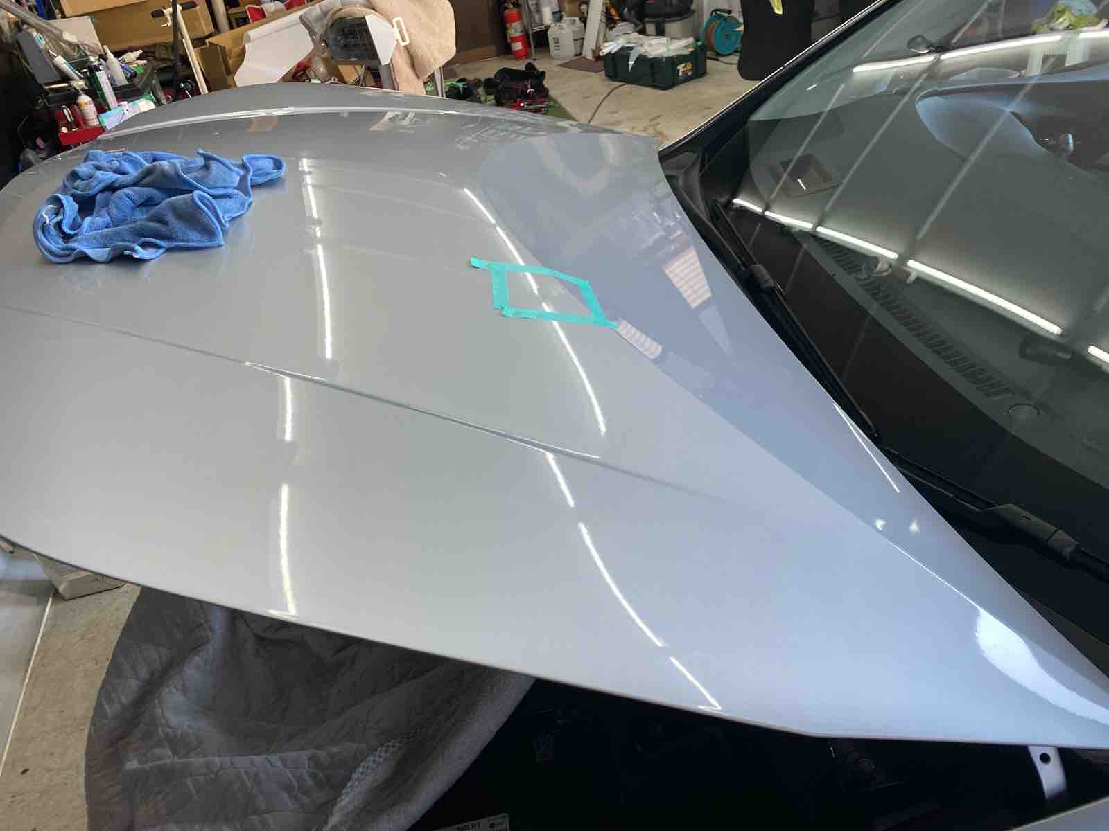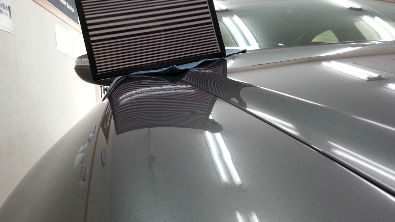 アルミボンネットで、さらにキツめの凹みでキレイに直すには難易度はかなり高めです。