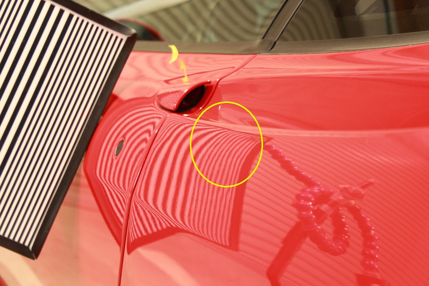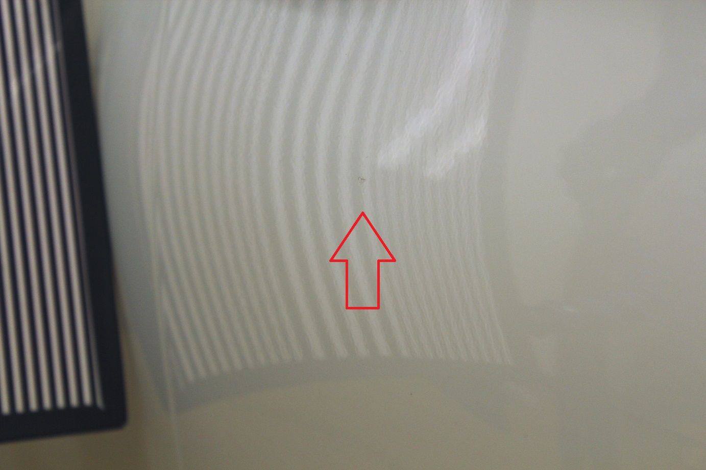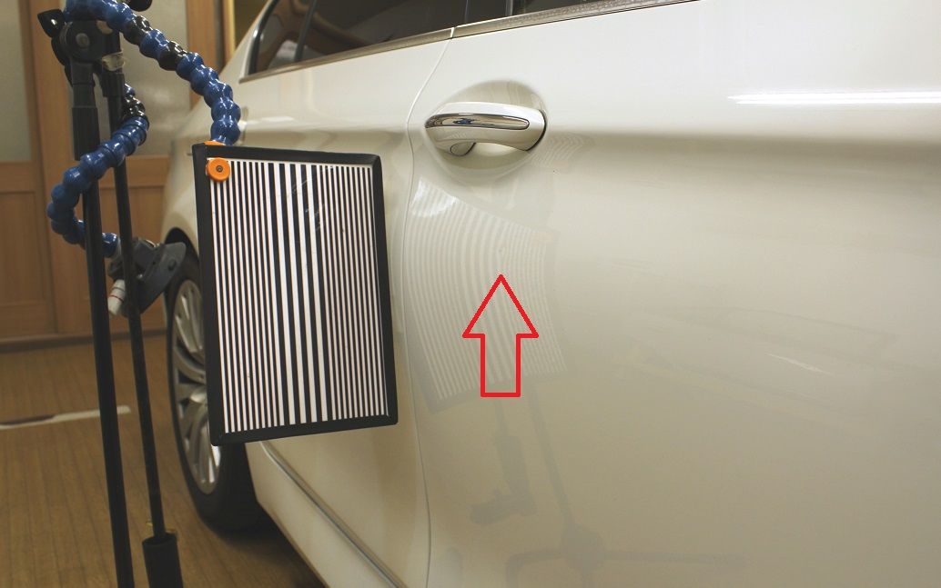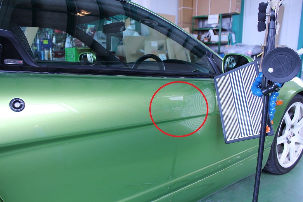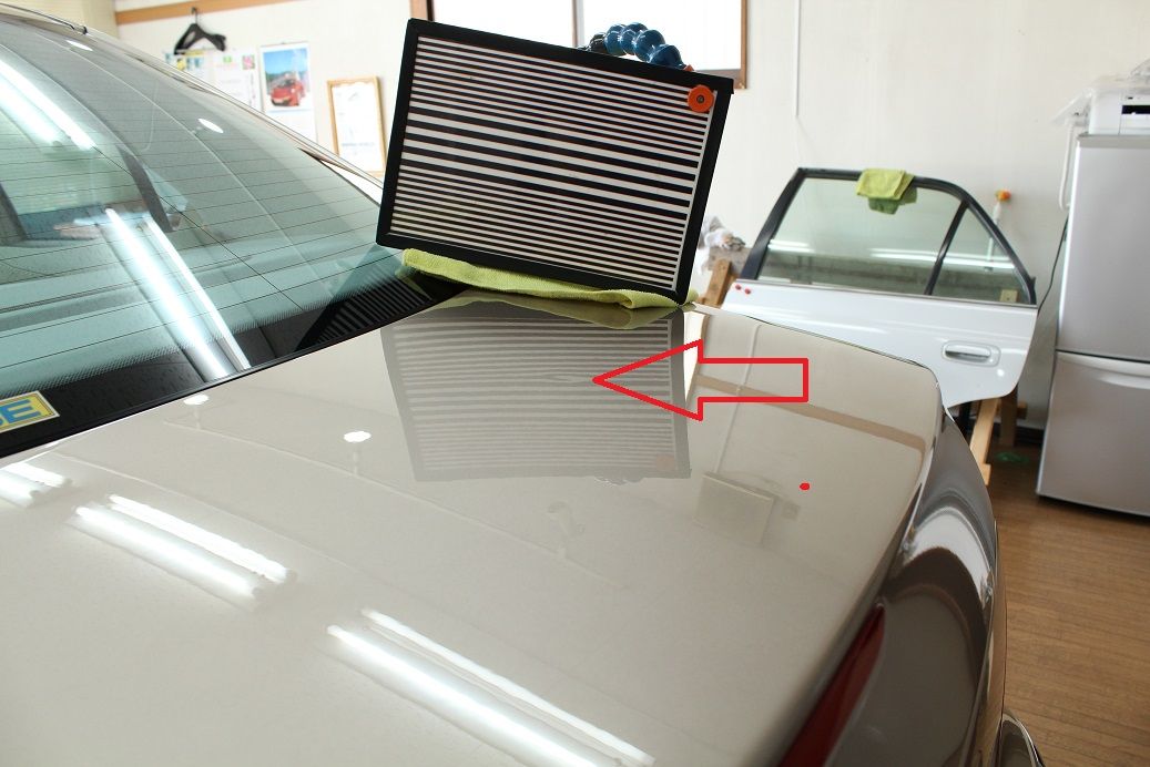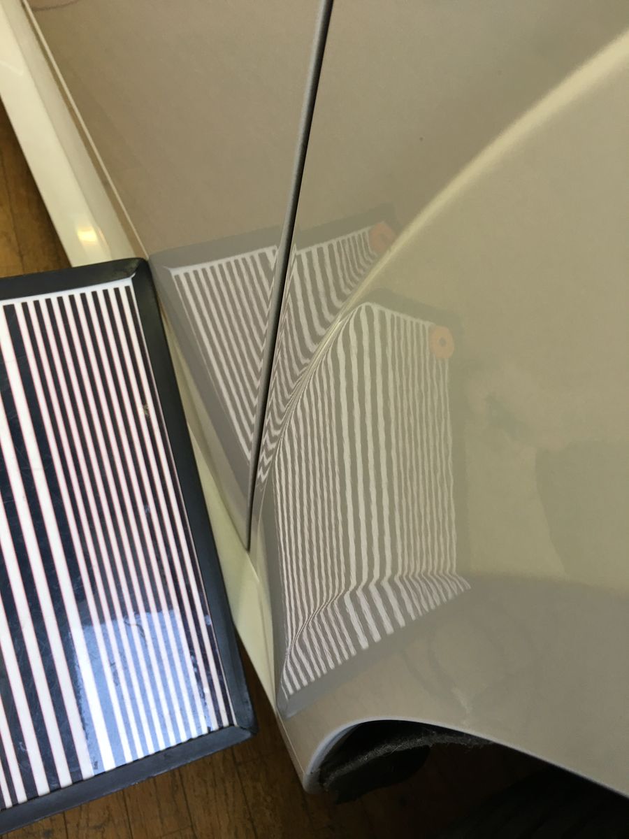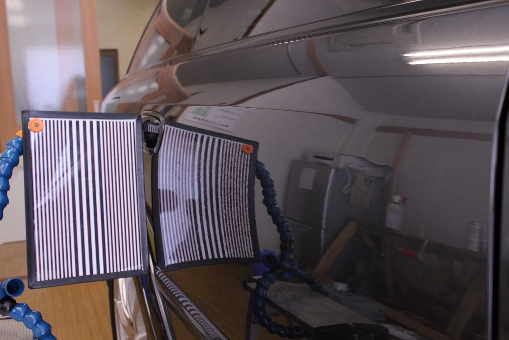 アルミボンネットで、さらにキツめの凹みでキレイに直すには難易度はかなり高めです。