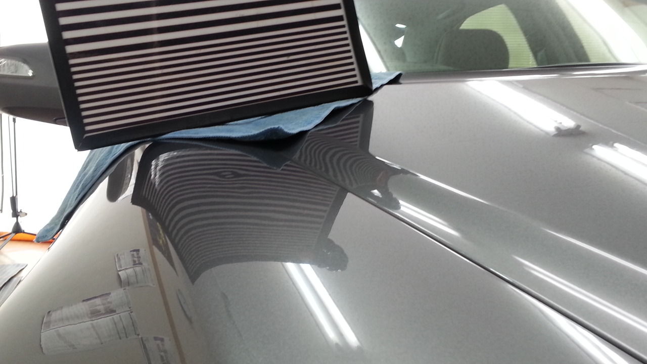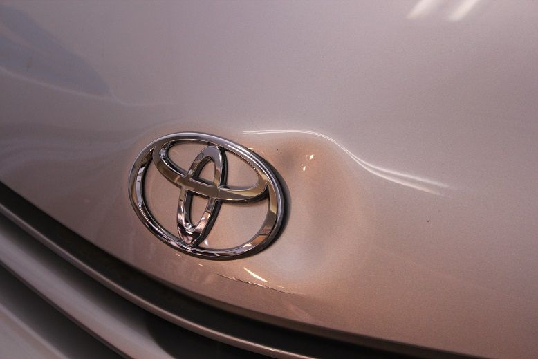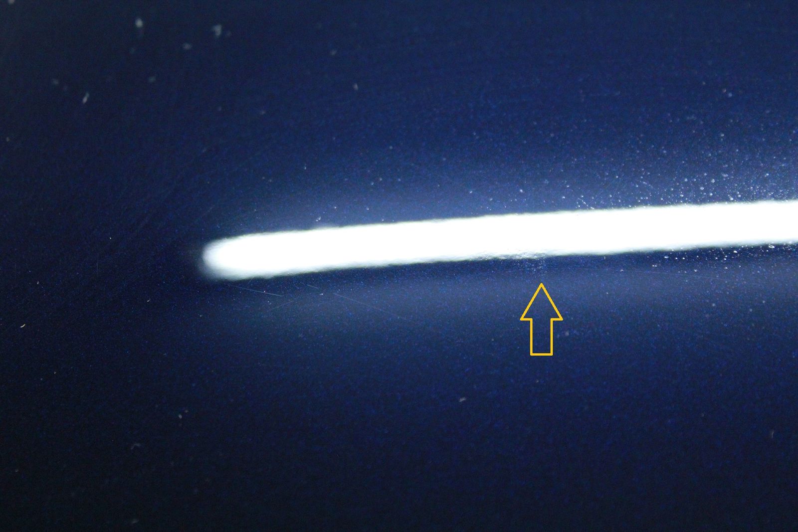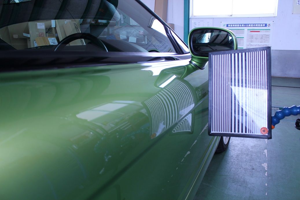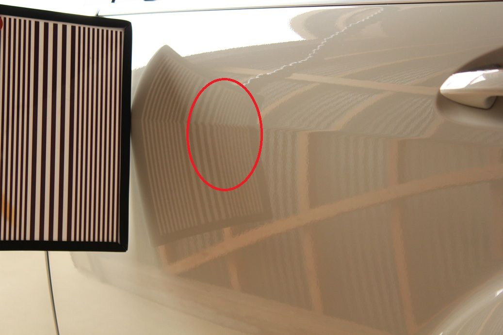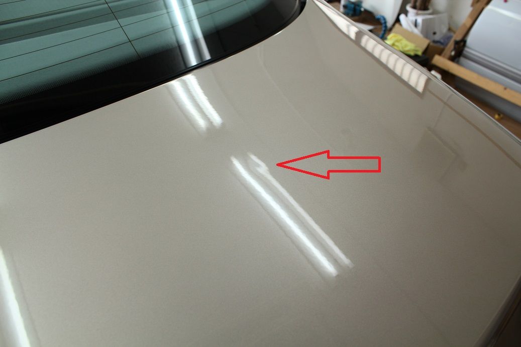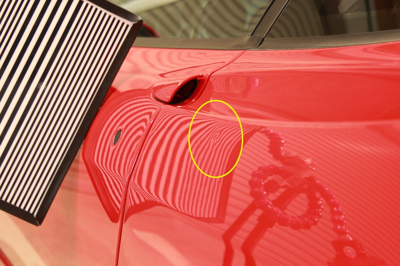 アルミボンネットで、さらにキツめの凹みでキレイに直すには難易度はかなり高めです。