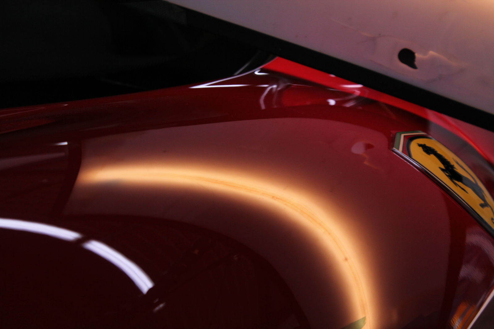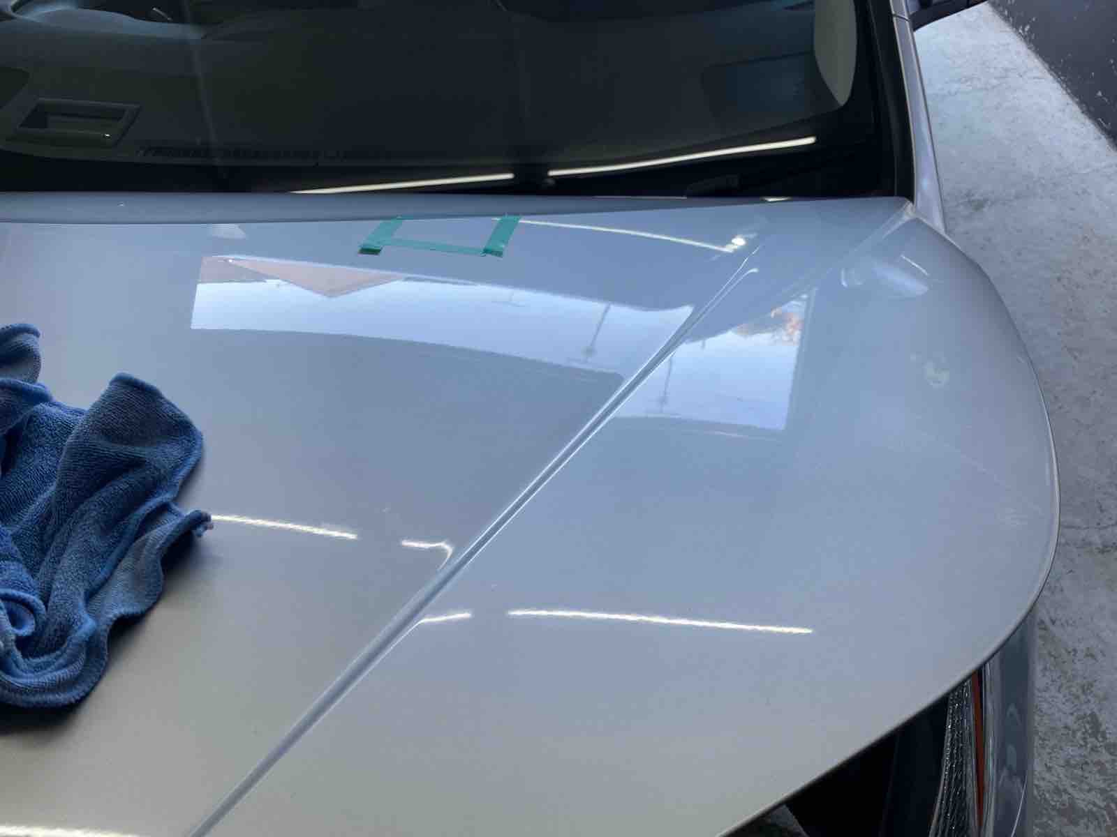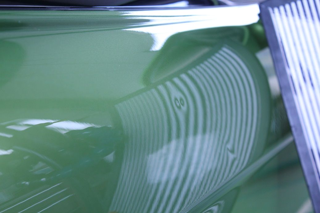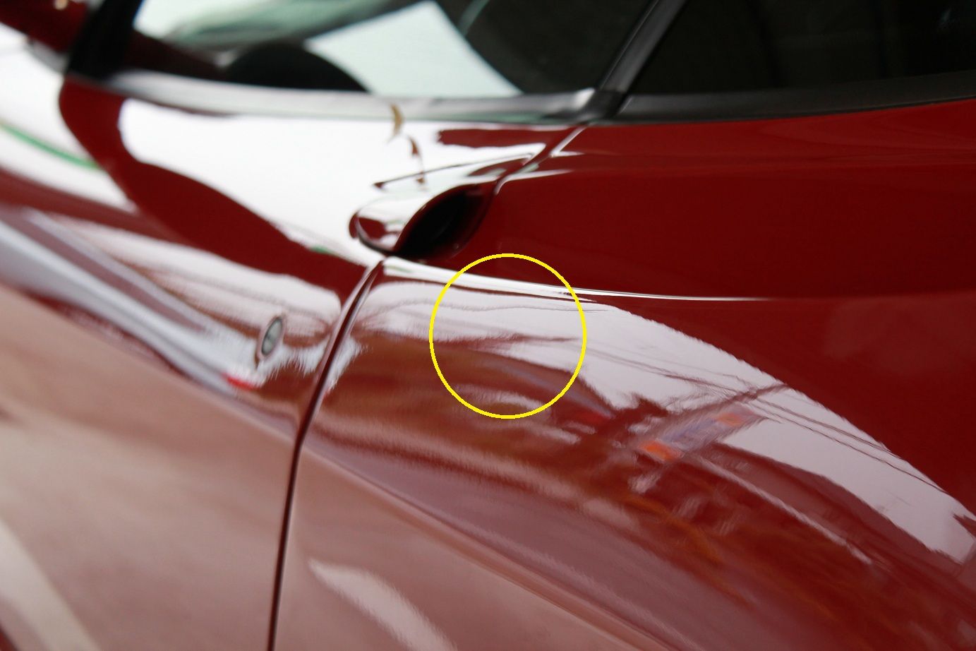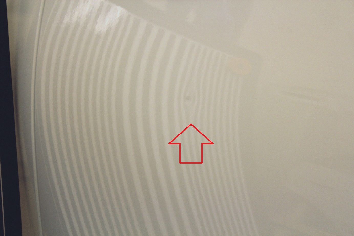 アルミボンネットで、さらにキツめの凹みでキレイに直すには難易度はかなり高めです。