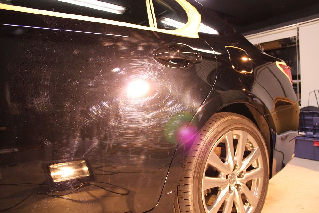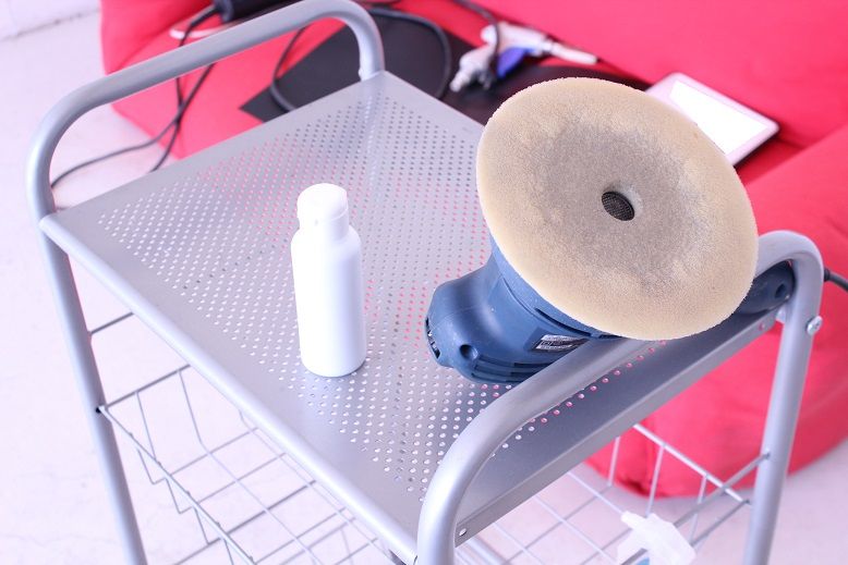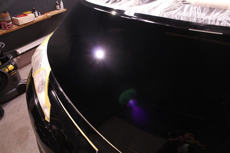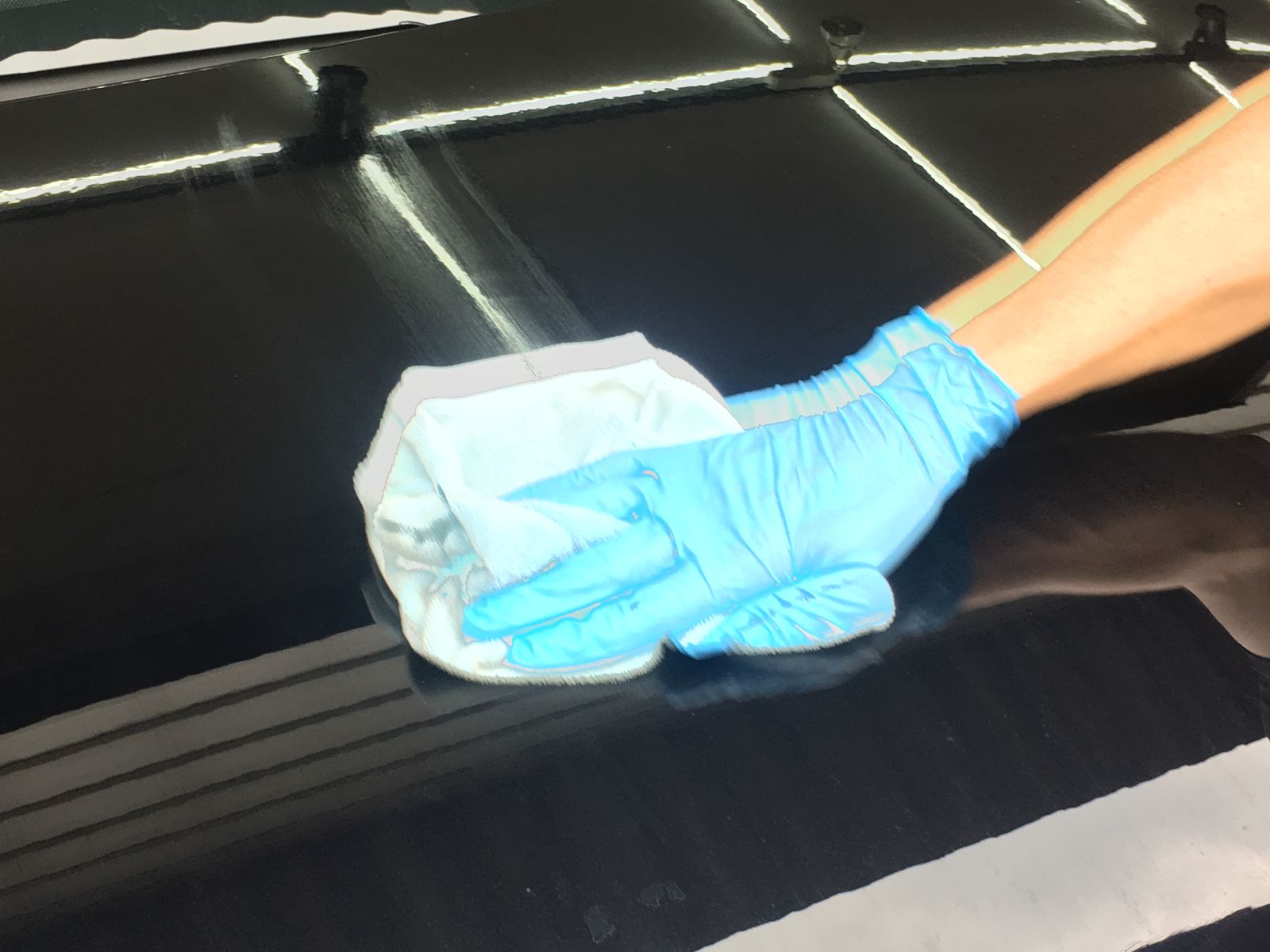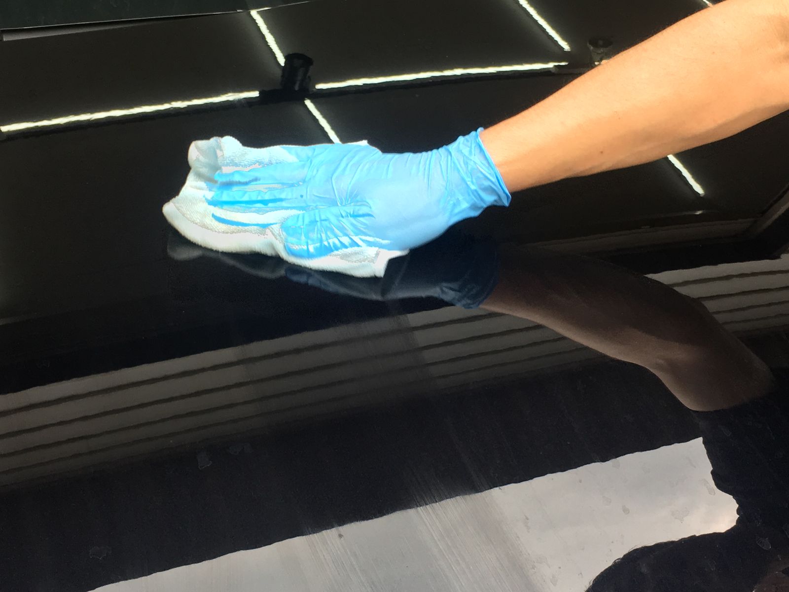 このまま撥水剤を施工しても意味ないのですべてのガラスを専用研磨剤で磨きます