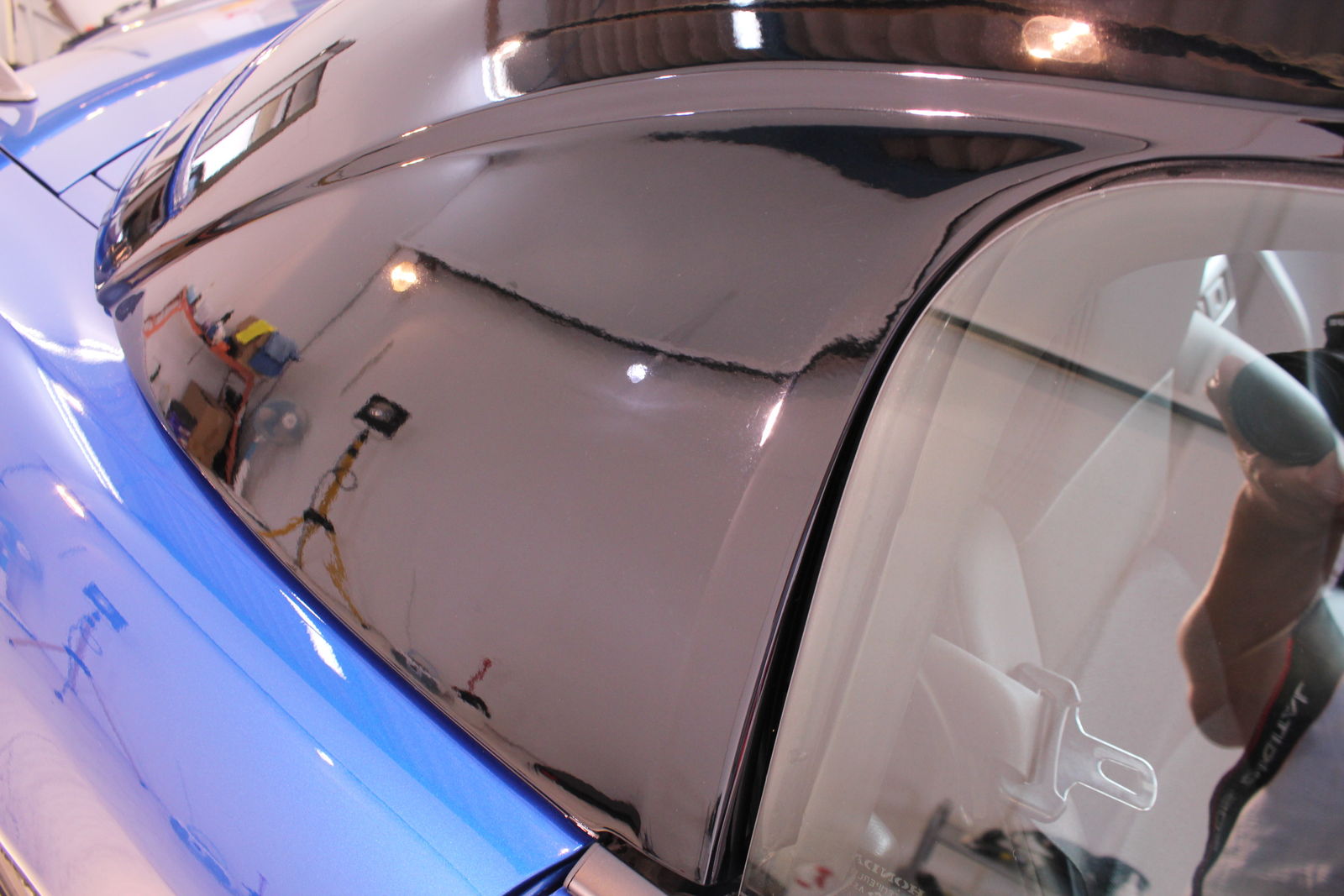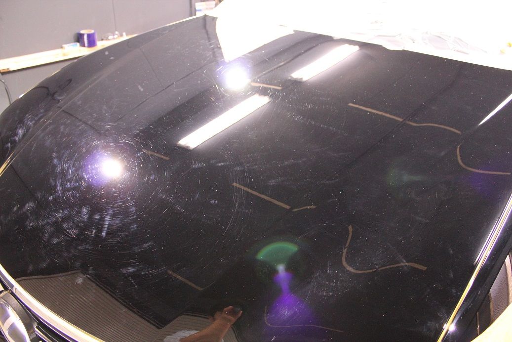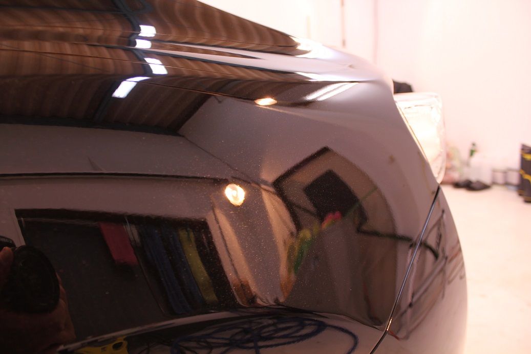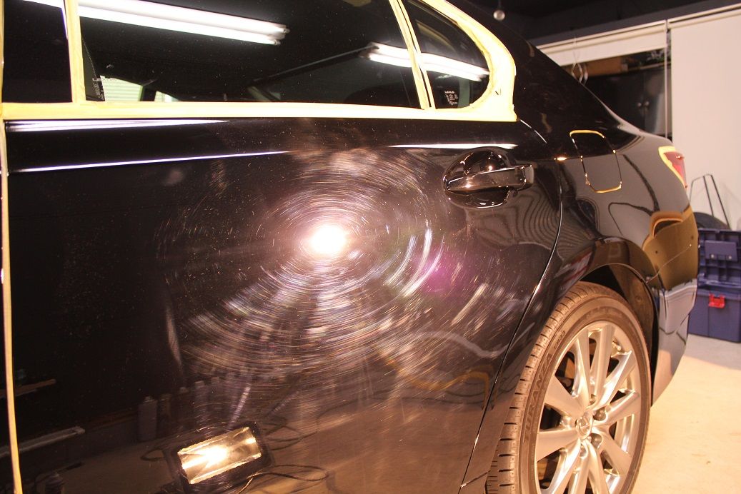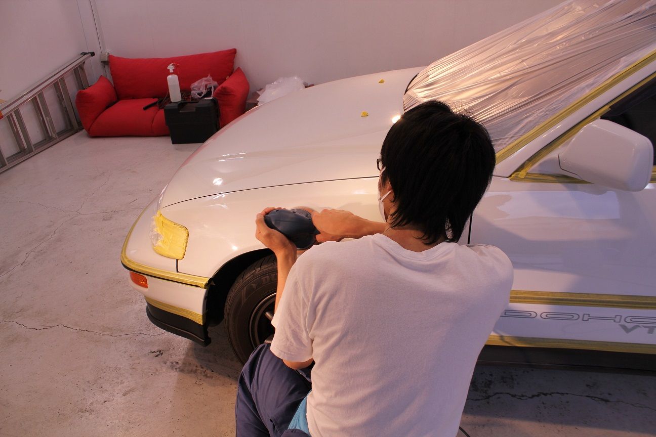 このまま撥水剤を施工しても意味ないのですべてのガラスを専用研磨剤で磨きます