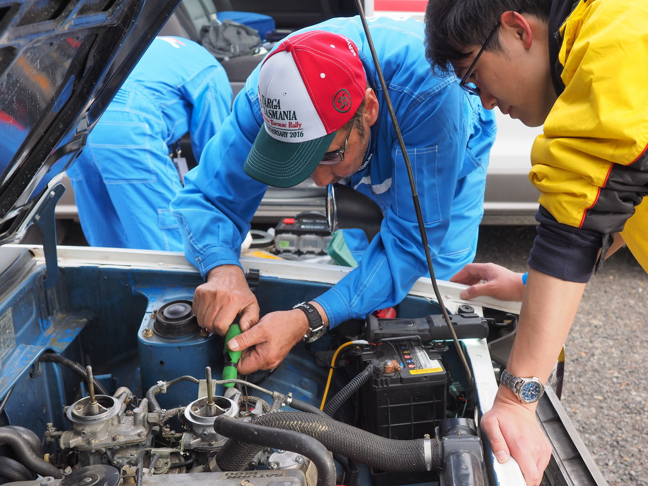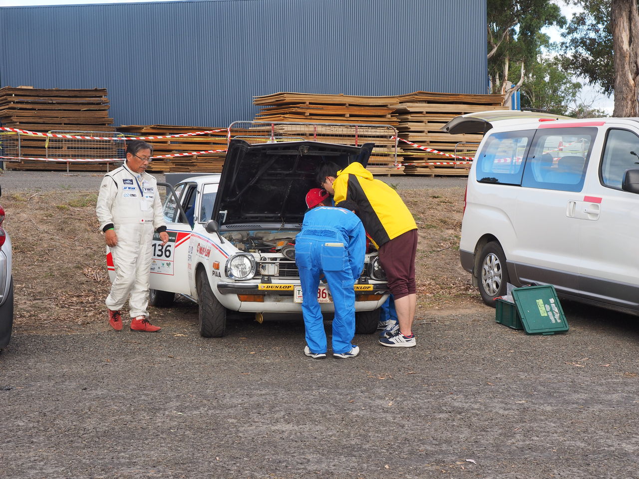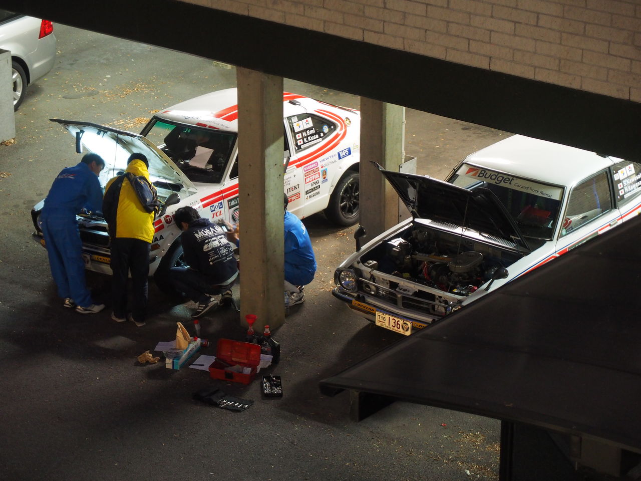 お見送りを終えて宿に戻る途中、今日も何事もなく完走か!と思っていたその矢先、ランサーにエンジントラブルがあったとの一報が......