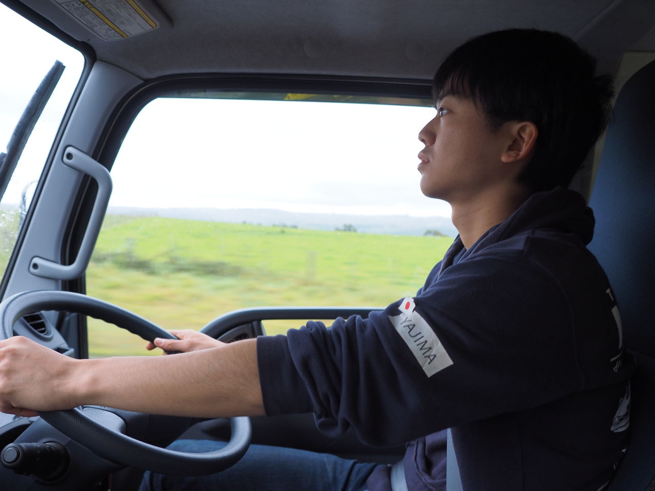 ↑キャンターを運転する矢島。今日も長距離移動となり、着いた頃にはすっかりくたびれていました。