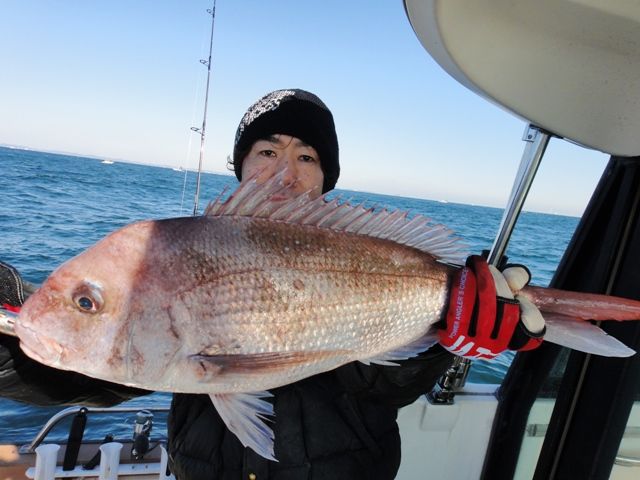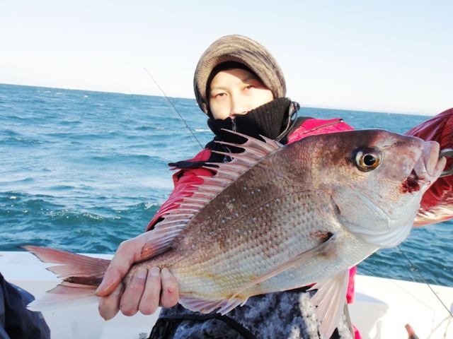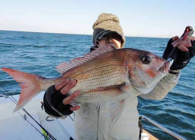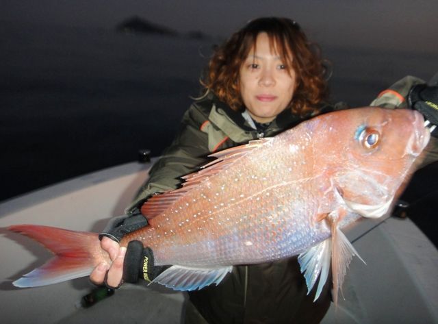 本日の主役エリちゃんが、58センチのマダイで魅せてくれました。