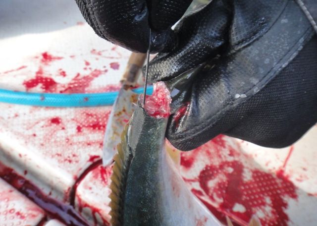 終了間際に、彼はイケスの中の全ての魚を「神経抜き」で〆る!