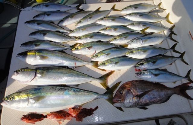 ブリが2本にワラサが6本にサワラにハマチがウジャウジャ!