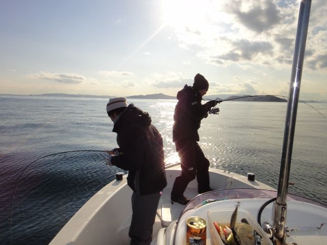 お昼からはジギング初挑戦の2人が、いつものヒロ君と遊びに来てくれました。