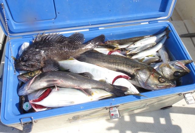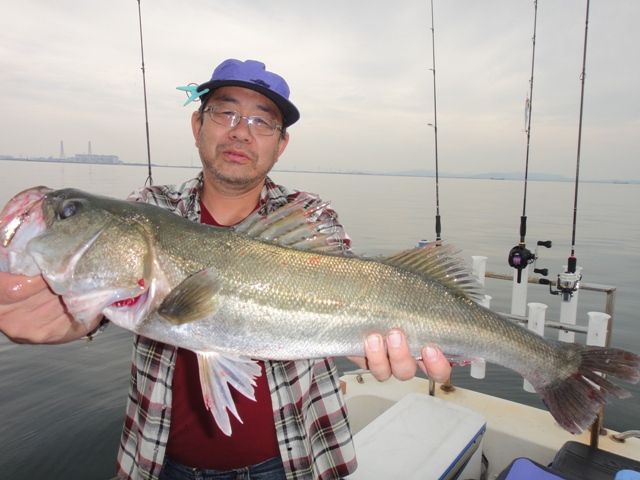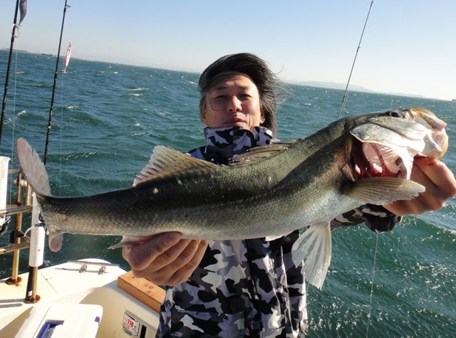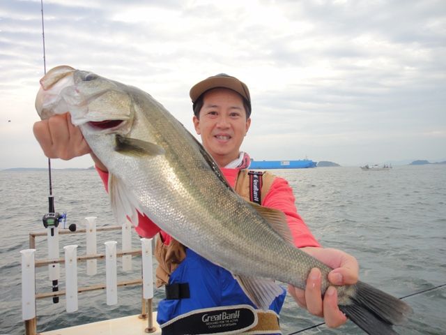 朝一から沖ジギングにてシーバス連発ですが( ̄▽ ̄)