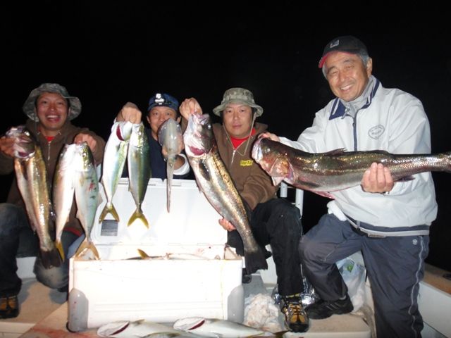 結果、シーバス74センチ頭に6本、ワラサ3本、ハマチ1本と爆ってました(。-∀-)
