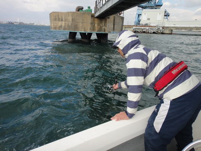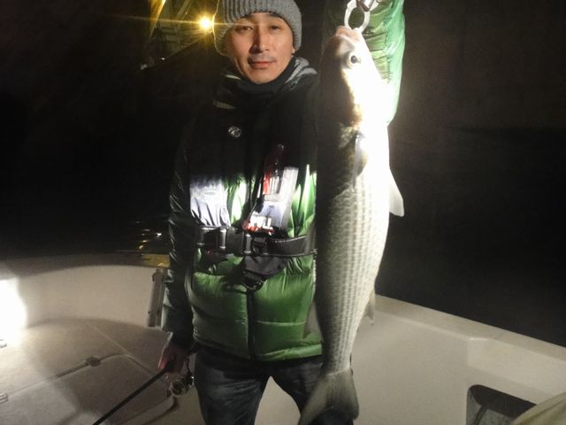沖は完全無理だし、衣浦の中も大荒れだったんで、大きい船にて衣浦シーバス!