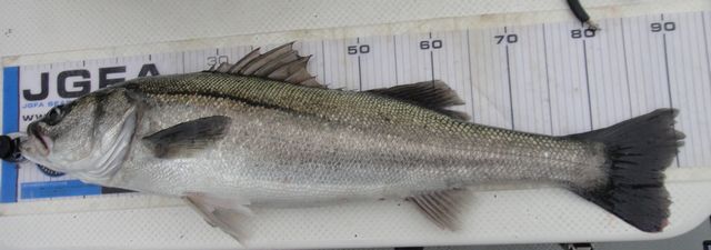 沖のキャスティングゲームにて、久々にヒラスズキが出ました☆