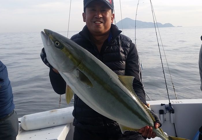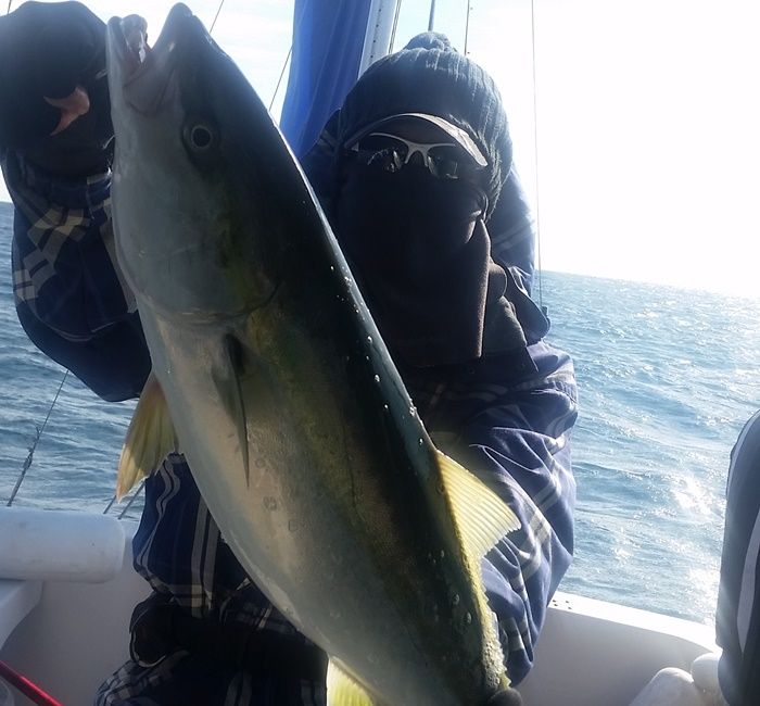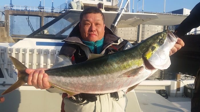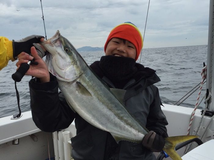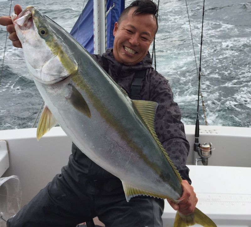 お連れの方々のタックルの世話をしながらも彼がジグを落とすとスグにブリが掛かる!