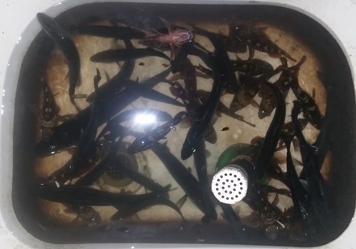 メチャクチャに釣れる1歳魚シーバス(15センチ前後)は、その場でリリースして、2歳魚シーバスと根魚のみキープしましたが、イケスは満タンでした☆