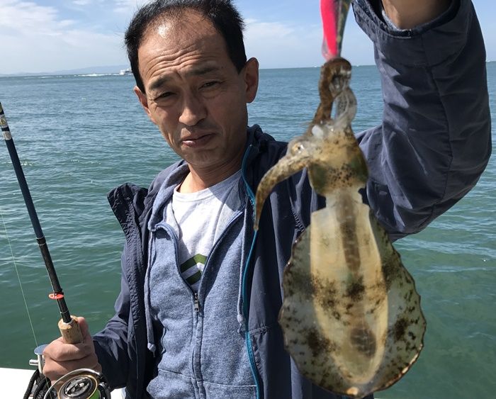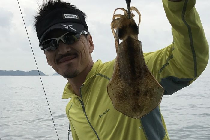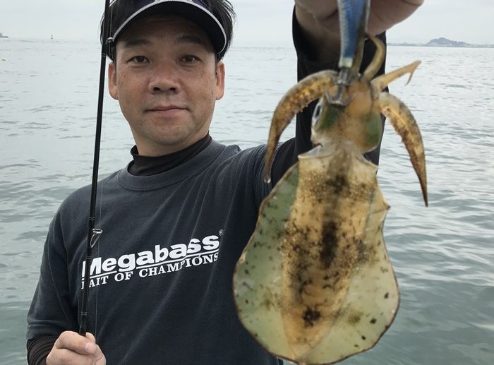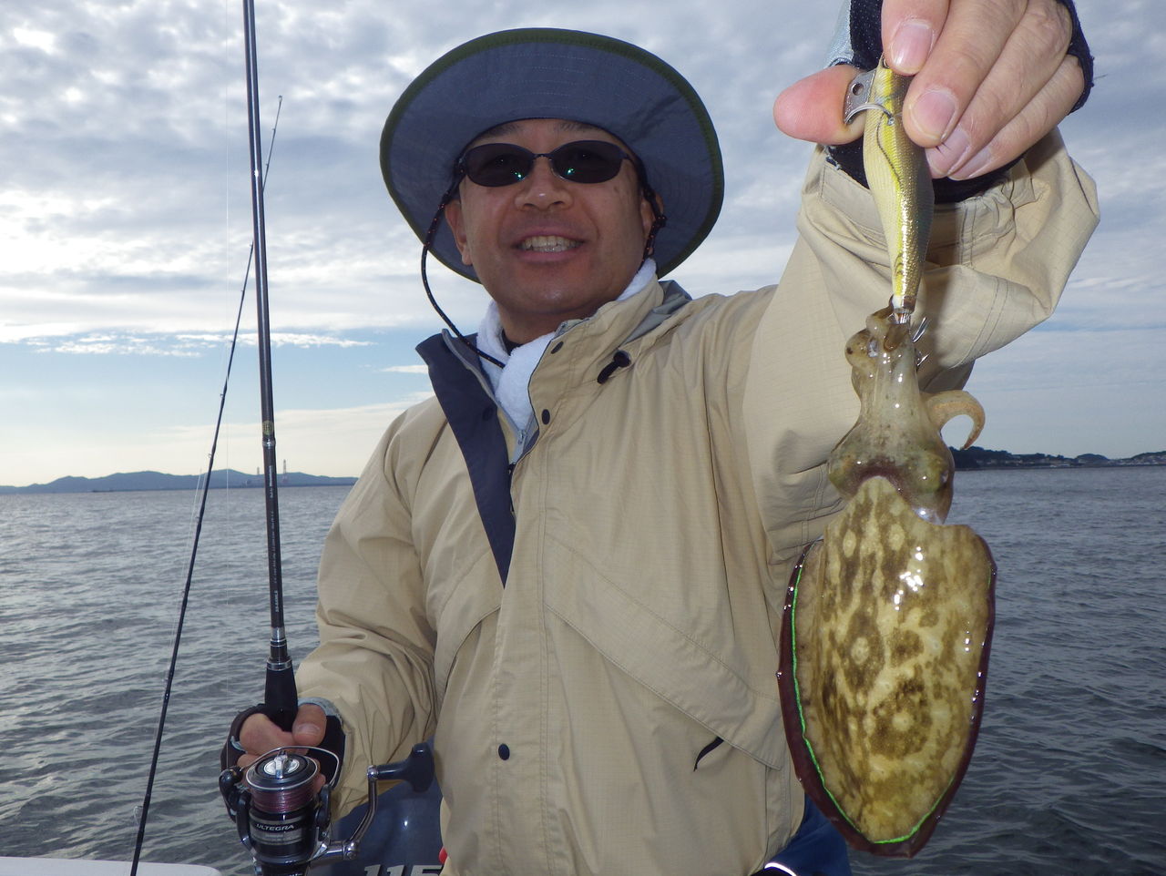 なぜがコウイカが釣れて喜ぶカワダさん!