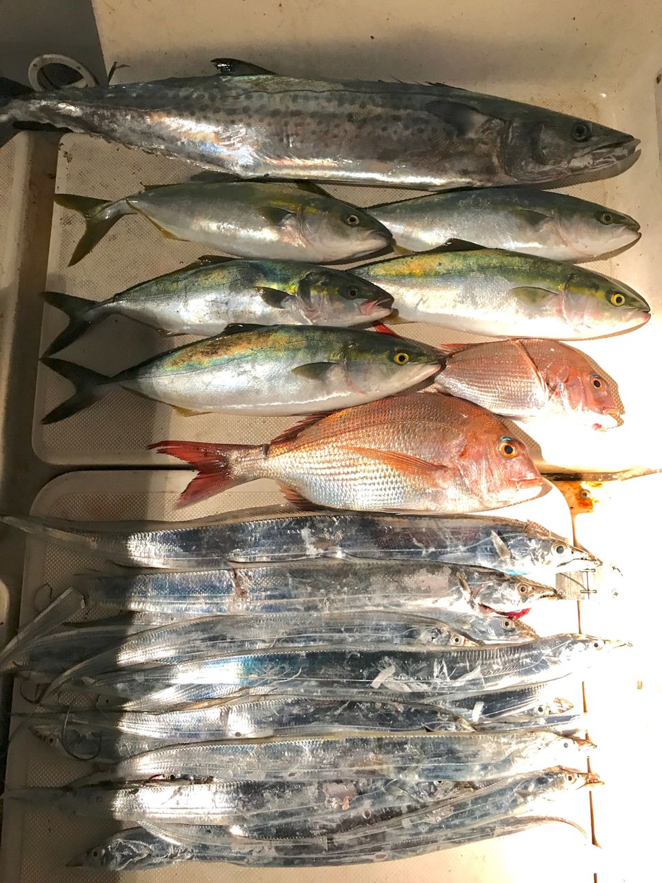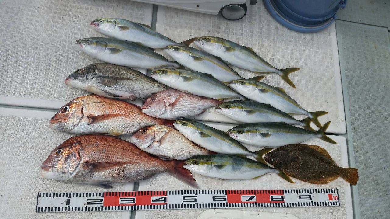 ハマチがメインですが、マダイやハタ系、殆ど切られちゃうけどサワラもちょいちょい釣れます。