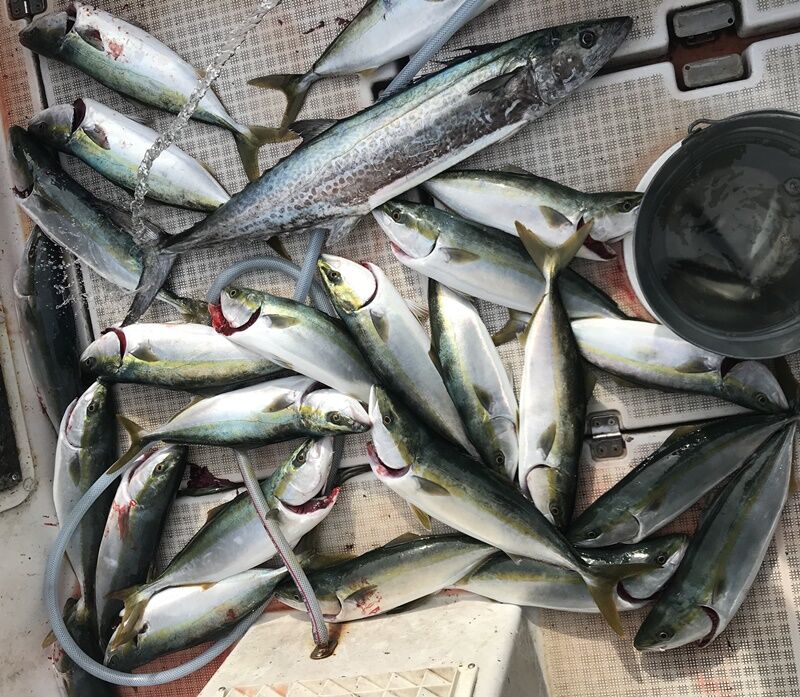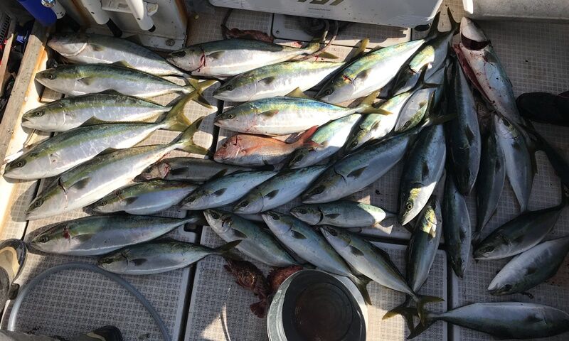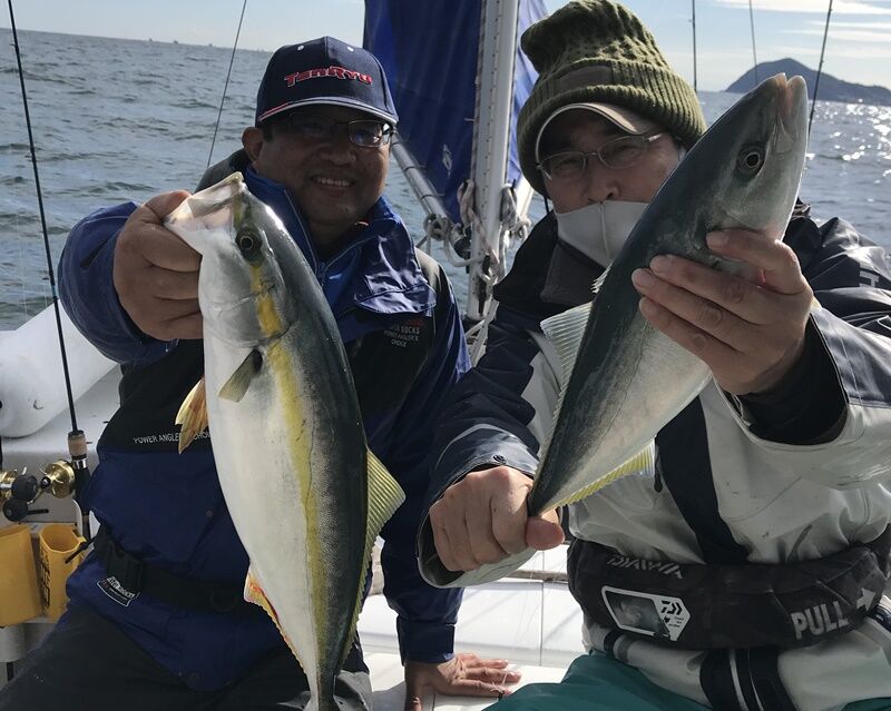 朝一だけハマチ釣って、海が荒れる前に近場に逃げ帰り