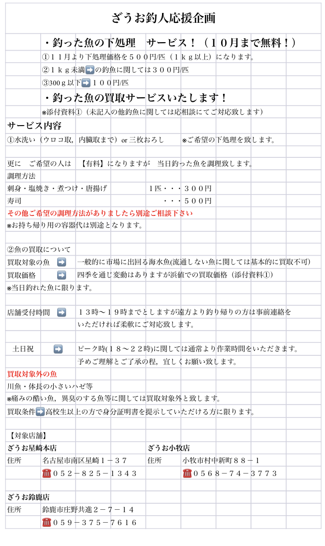 私(成田)のお客様なら、2月まで魚を捌く料金がタダ!!!