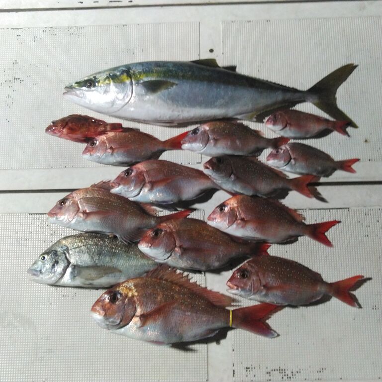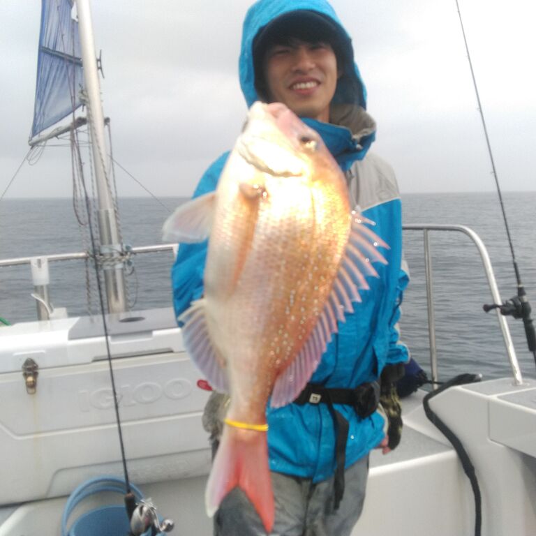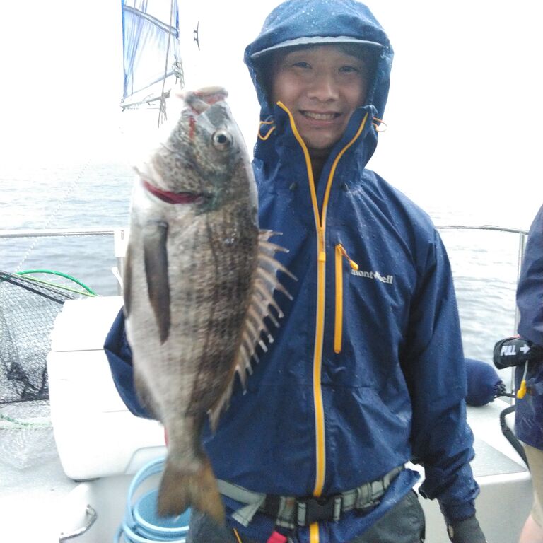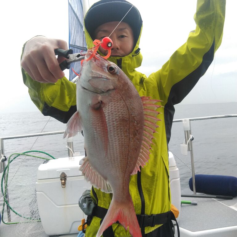 時間だけが無情に過ぎる中 何とか釣れたのは小型のマダイのみ🥶 雨も降りだしゲストの気力も限界に近くなった頃に、前日魚は居たけど爆風と高い波で釣りにならなかったポイントへ❗