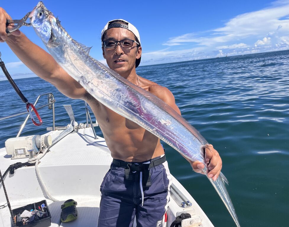 近藤隊長から「普段、ゴムボートでマダイばかり釣ってるから、今回は太刀魚とシオ狙いたい」とのリクエスト。