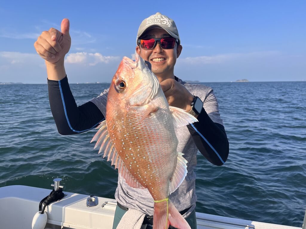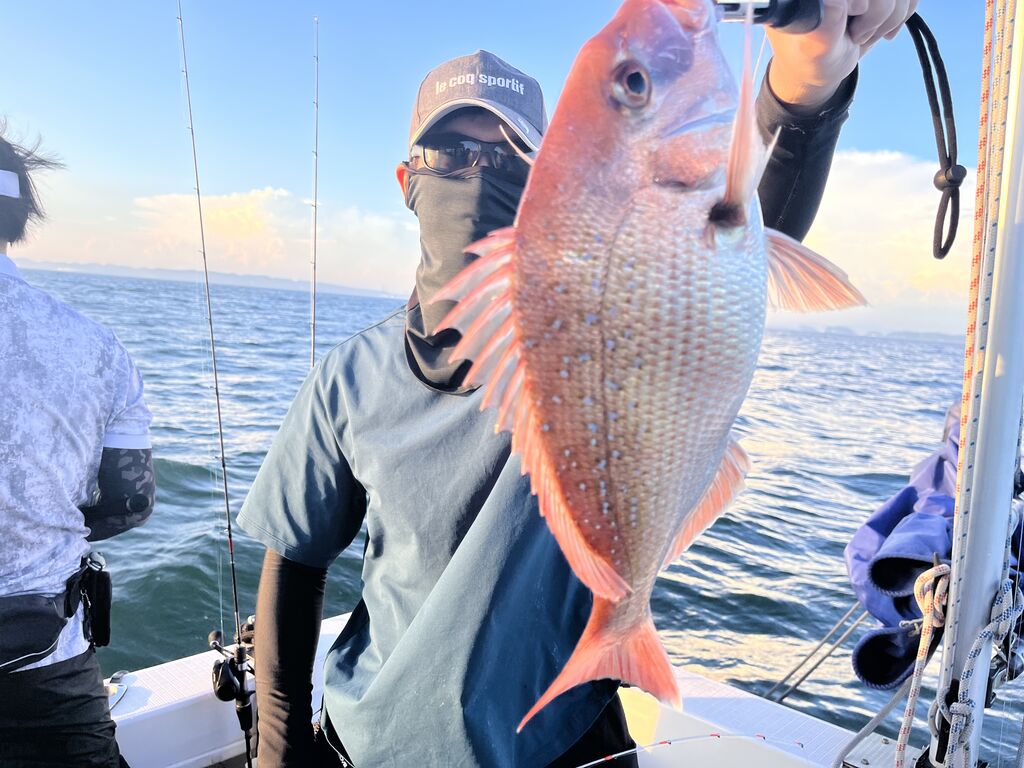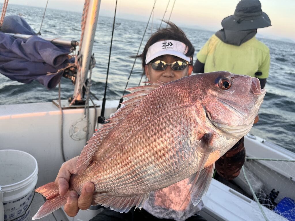 4本釣った時点で「キャプテン、マダイ行きましょう」なんて贅沢なリクエスト😁