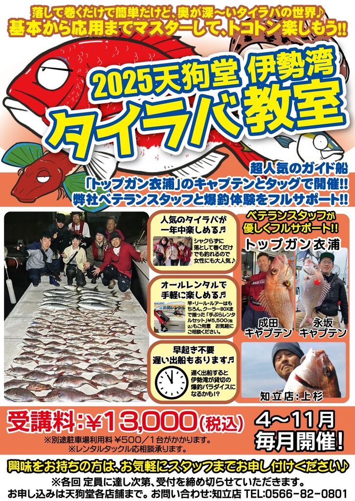 「2025天狗堂伊勢湾タイラバ教室」開催します🎣