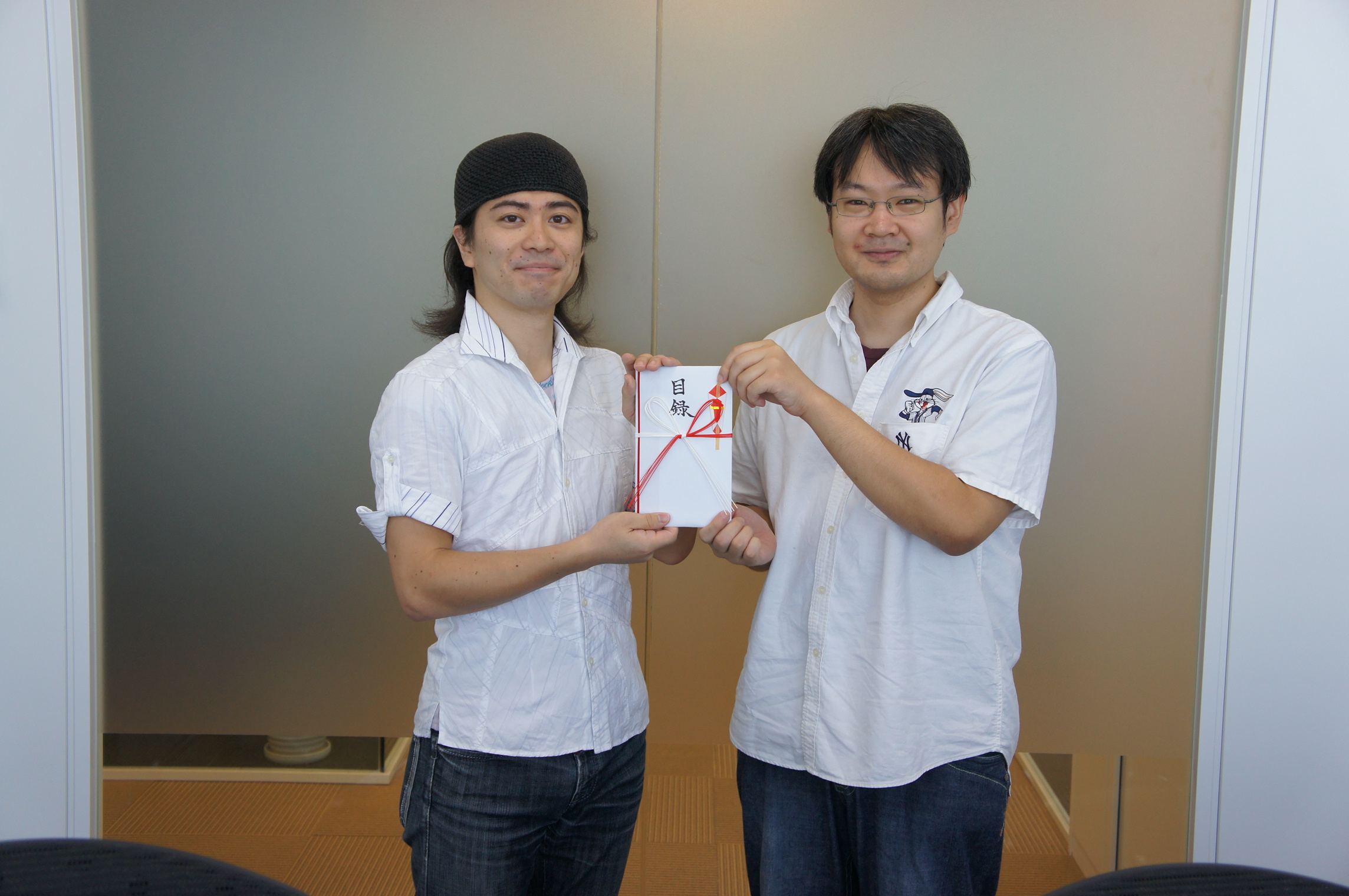 チーム「team_karakani」のお二人(三人チームで、本日はお二人にお越しいただきました)。おめでとうございます!