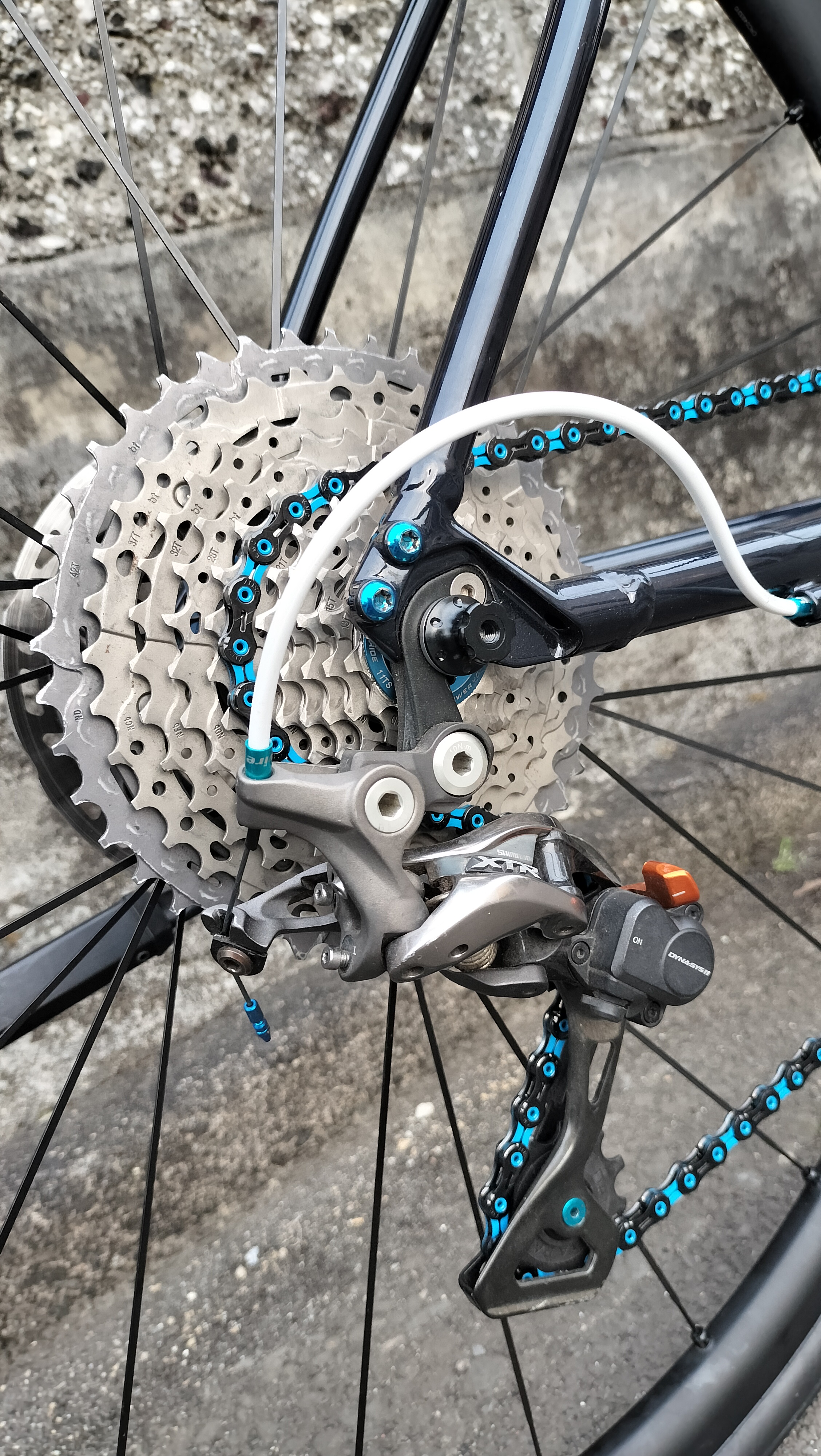 ディレイラープーリーの洗浄に、クランク外してチェーンリングの洗浄、チェーンはKMCのDLC11に交換。