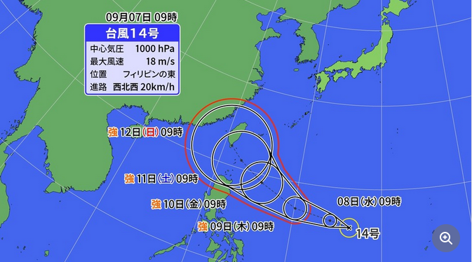 ★台風14号、中国直撃コース