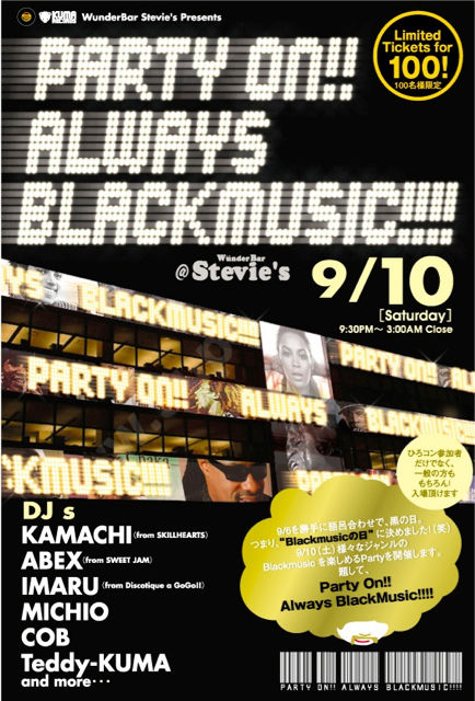 9/10(土) BLACKMUSICの日、制定?記念! PARTYします!