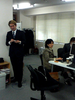 活動風景はこんな感じ(モデル:Oがわさん)。普段を知らなければ至って普通の会社ですね。