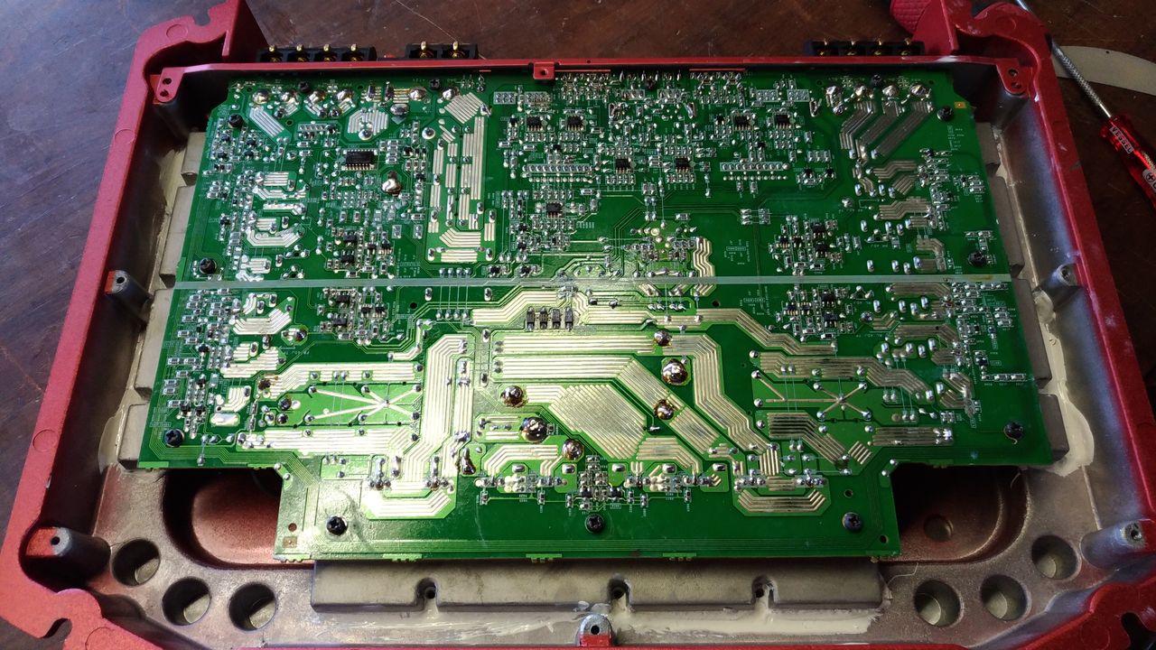 そして、リア基盤にあるコンデンサ部分のハンダも溶かしてみた。