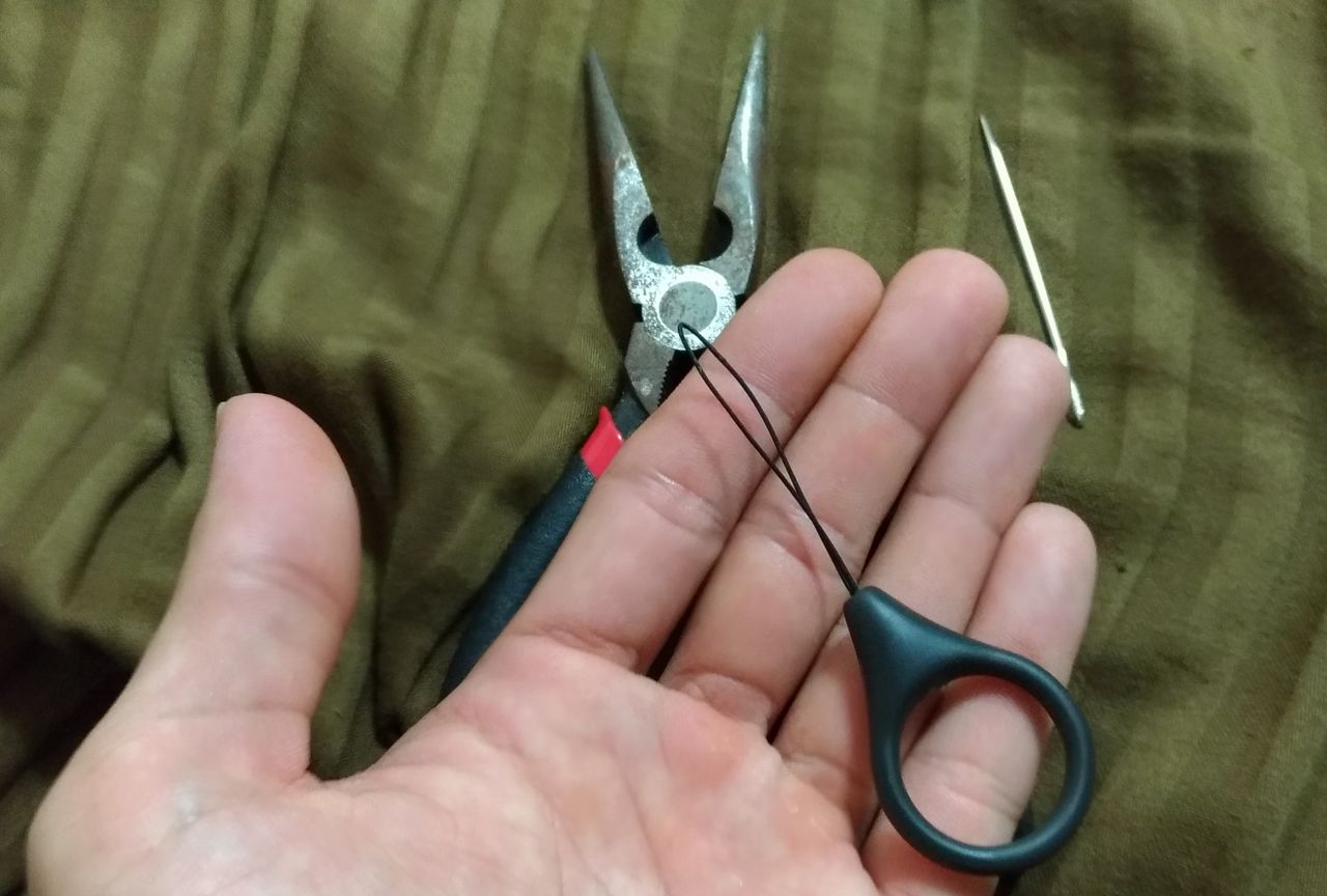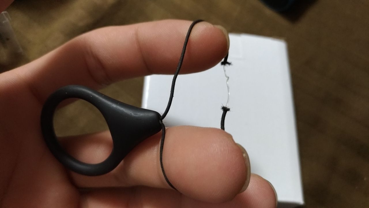 ってことで、買ったばかりのストラップから紐取り出して、針とペンチを駆使して、入れ替えましたw
