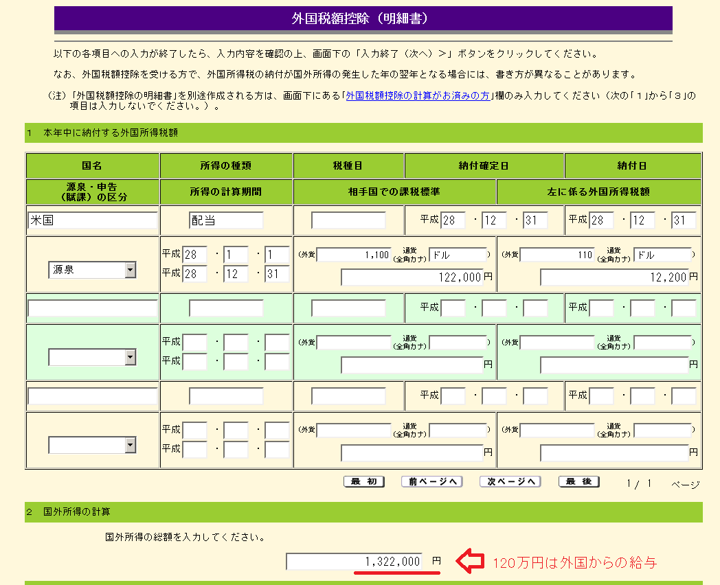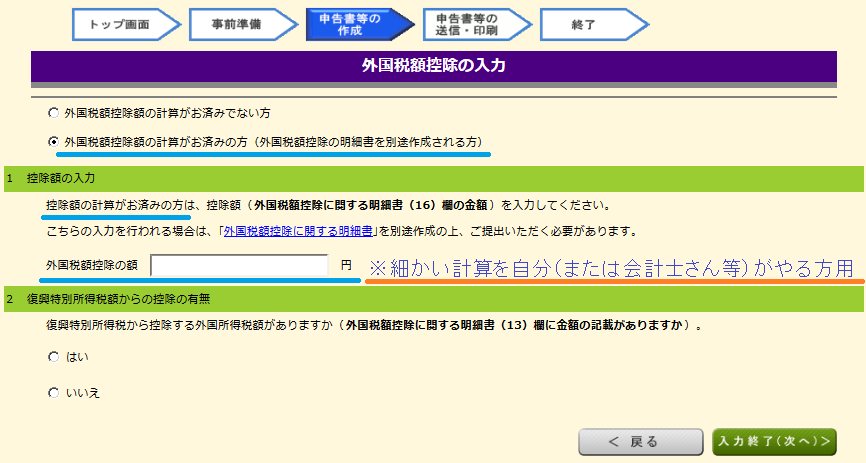 外国税額控除の項目を記入する前に、まずやらねばならない大事な入力項目があります。