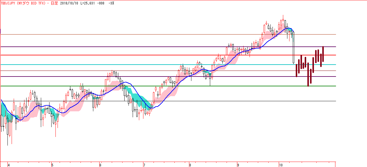 1週間以内に於ける米国株式指数にて