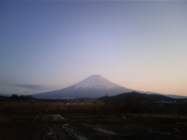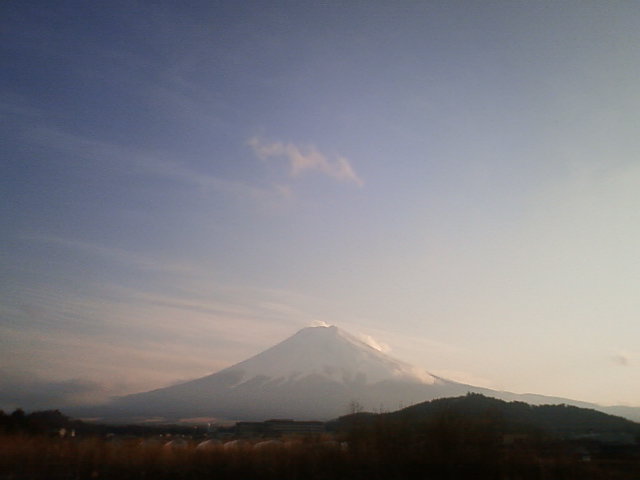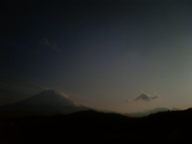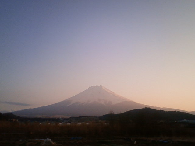 日が沈むとともに、富士山周辺の雲が取れてきました。いつも雲が多い時も、夕方になって日が沈んでくると、不思議に富士山周辺の雲が消えていってしまいます。